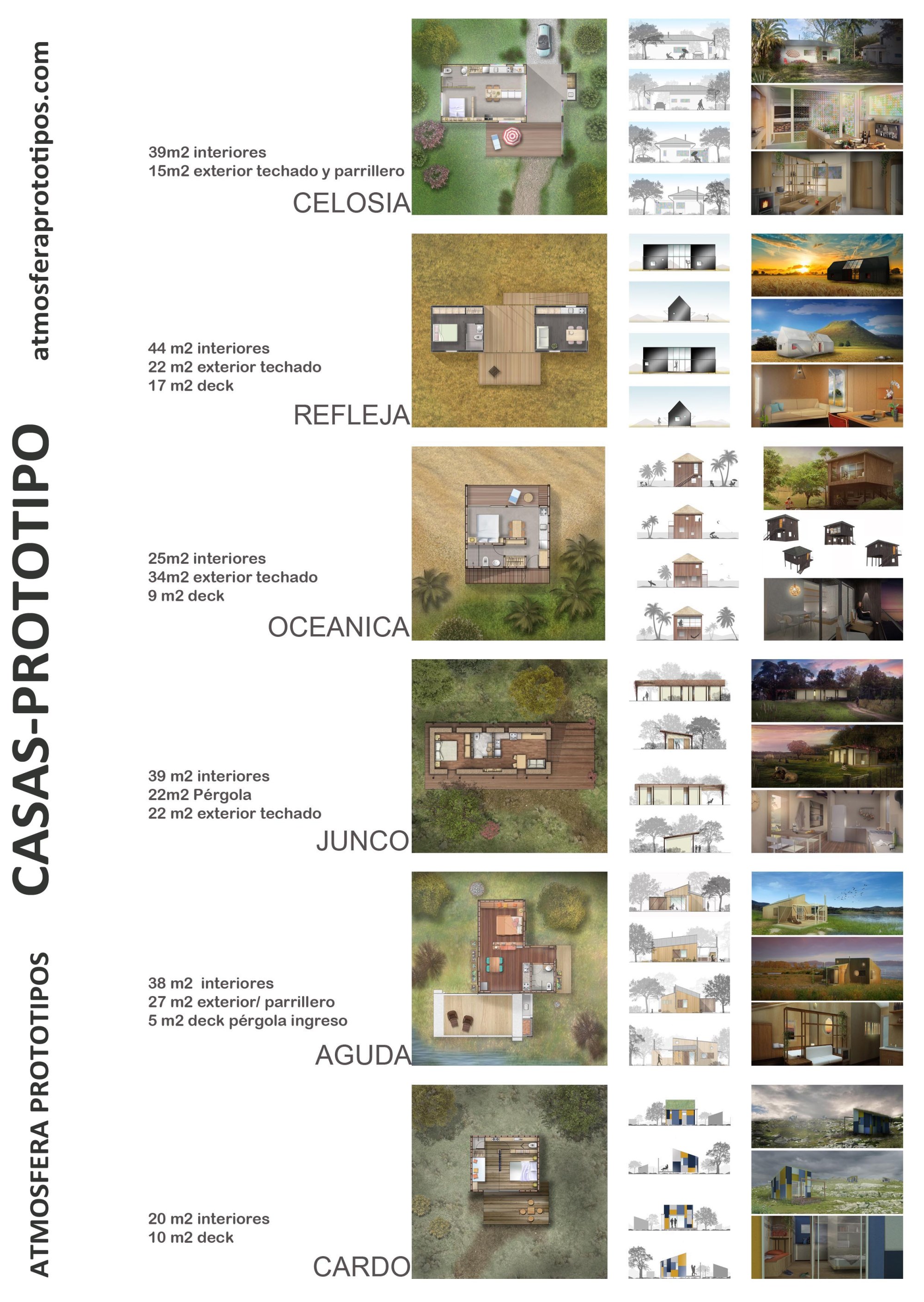 Casas – Prototipo es la primera serie de Atmósfera – Prototipos, que pone énfasis en presentar una variedad de soluciones al sueño de la “casa propia” o de la “casa de temporada”, buscando mejorar los tiempos de obra, las prestaciones y los costos.