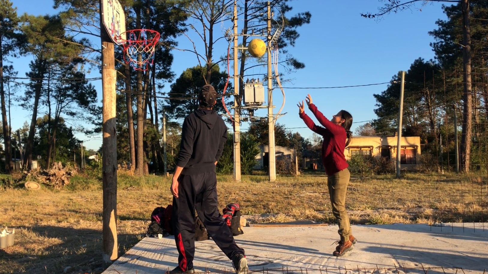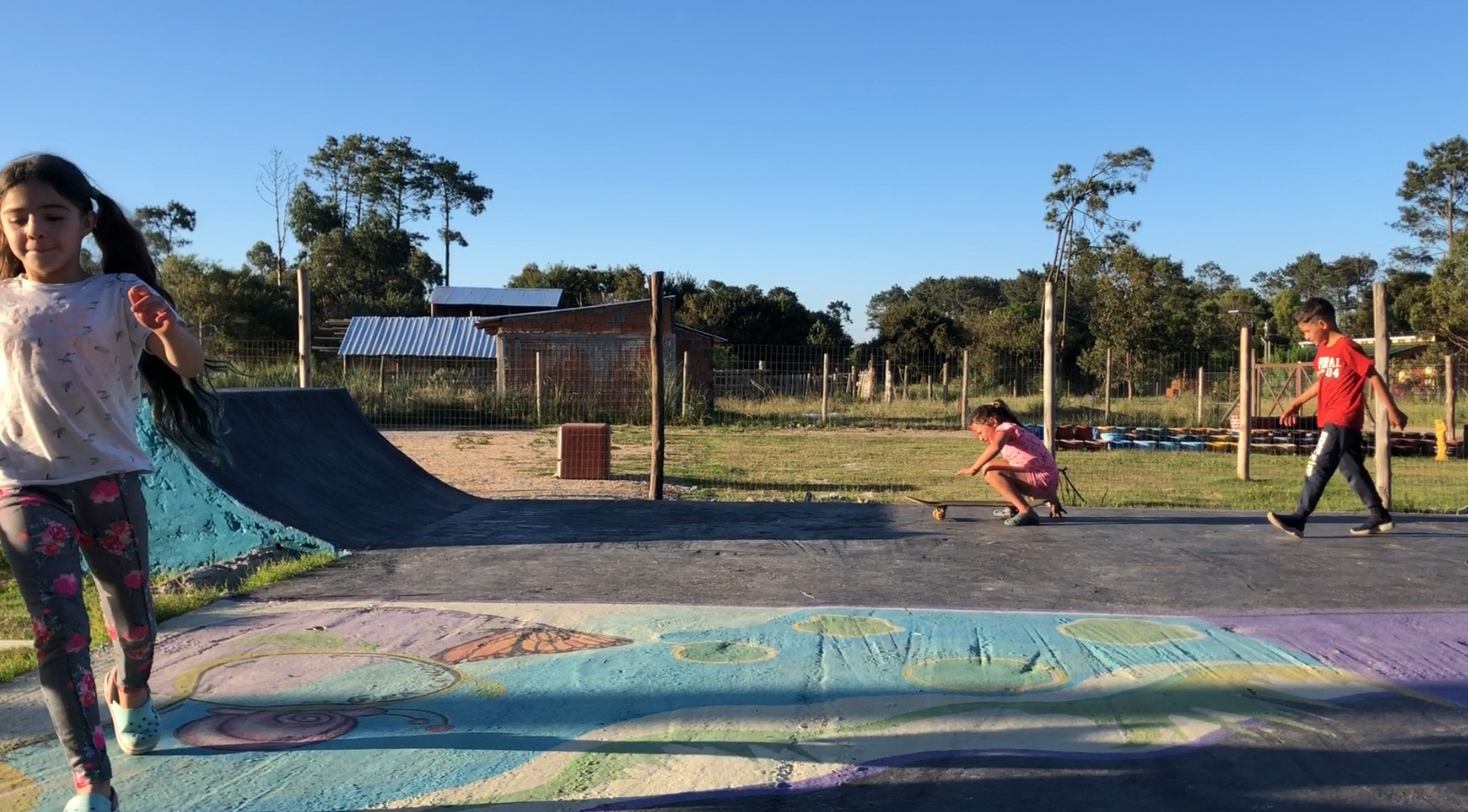 Los territorios baldíos nunca están vacios de datos y estos pueden ser utilizados a favor del futuro proyecto. En este caso había construido un contrapiso de unos 12×7 metros. Una ruina de 84m2 que hablaba de qué en ese padrón algún vecino en algún momento intentó construir su casa. Según nos comentaron, luego de varias idas y vueltas, al final el deseo colectivo de tener una plaza se superpuso logrando que el vecino termine entregando el padrón para el bien común y saliendo a buscar otro padrón donde construir su refugio. Visualizamos la primera intervención: transformar esos 84 m2 de hormigón en un equipamiento que pueda ser utilizado por varias generaciones. Cancha de basquet de un solo aro, en los lados cortos del rectángulo construir rampas de skate y en uno de los ángulos adosar equipamientos para definir una zona infantil. Por último pintar una geometría discreta, provocativa, que indicaría que esos 84 m2 serían un territorio de convivencia intensa.